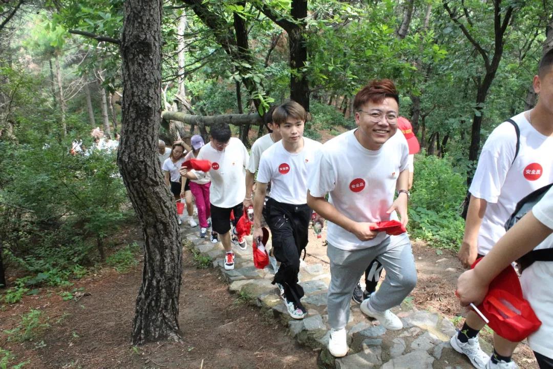 我院全体党员师生进行了党史教育拓展活动,在攀登马耳山过程中,大家一起努力。虽然天气炎热,但是大家并没有放弃,因为现在的困难都远远比不上革命先烈所经受的困境。同学们互相鼓励,相互搀扶,老师们在前方着大家,带领大家攀登山顶!最终在同学们的坚持下,大家一起登顶,圆满完成体验式党史教育拓展活动!过程虽然艰难,但是我们秉承着“不忘初心,砥砺前行”的信念会一直走下去,克服困难,最终一定会成功登顶!