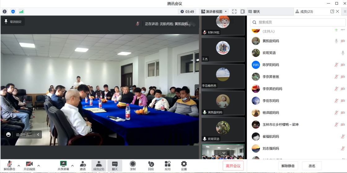 会议还设置了家长互动环节,学院老师与线上线下的家长们就学生学业情况、学校生活、考研就业等问题开展了热烈的讨论互动。家长们纷纷为学院领导和老师们的认真负责点赞。“上大学后,与孩子的沟通变少了,不太了解他的大学生活,通过家长会,了解了孩子的学习、生活情况,知晓了孩子的行为和心理活动,这可以帮助我们减少与孩子之间的代沟,增加了情感交流”一位家长表示。