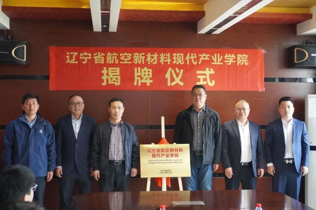会议期间,还举行了辽宁省航空新材料现代产业学院揭牌仪式。该产业学院是由沈阳航空航天大学联合辽宁美托科技股份有限公司、沈阳质及航空科技有限公司、沈阳欧施盾新材料科技有限公司及广联航空工业股份有限公司等多家航空航天特色企业共同建设。希望通过联合中科院金属所、大连理工大学、东北大学等高校科研机构的科技创新优势,采取“多校 多企”方式建设辽宁省航空新材料现代产业学院,实现“头部企业 专精特新 应用场景”的深度融合,打造“需求牵引-技术供给-生态重构”的创新闭环,为航空航天装备提供更多产业链技术、供应链产品,打通新材料创新成果转化“最后一公里”,更好推动航空航天和低空经济产业发展。