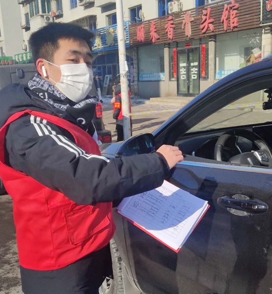 放假在家的刘世博以一名志愿者的身份加入到防疫站值守的工作中去,每天坚守在社区路口,对外来车辆和人员登记排查,统计社区家庭成员身体状况并进行体温测量和消毒等工作,勤勤恳恳地站好早晚每一班岗。同时,他也利用网络、发放传单等方式宣传防疫知识,帮助社区居民普及,强化对疫情的认知,提高居民对疫情的重视。在这场战“疫”中,他一直在强调一名积极分子的身份,“我年轻,我抗冻”,这是积极分子的态度,也是党的后备力量的体现。