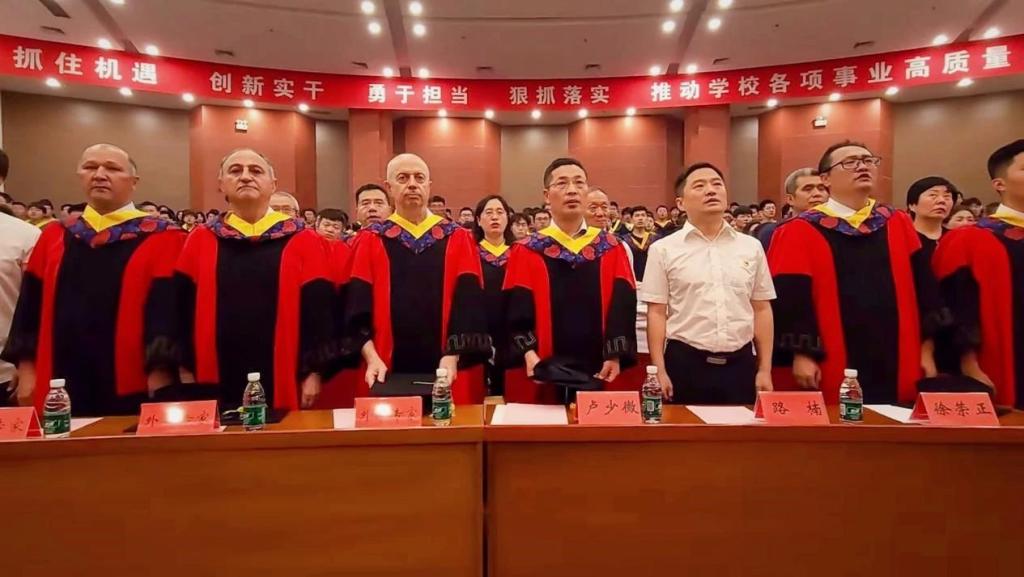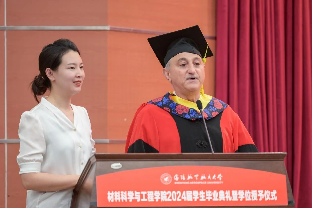 6月18日下午14时,材料科学与工程学院 2024届学生毕业典礼暨学位授予仪式在图书馆国内报告厅隆重举行。学院院长卢少微,党委书记路楠,副院长农智升、徐荣正,学院外籍专家团队,专业教师代表,2024届班主任、辅导员,全体本科和硕士毕业生以及部分学生家长出席典礼。典礼由学院党委副书记王欢主持。