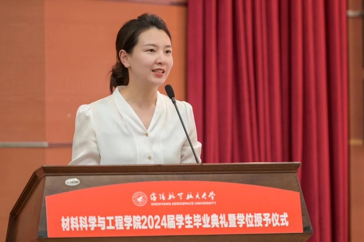 学院院长卢少微教授发表临别寄语。卢少微代表学院,向圆满完成学业的全体毕业生表示热烈祝贺,向悉心培养学生的老师们致以衷心的感谢,并从“材料传承”“材料过往”“材料水平”三个关键词分享了2024届毕业生与时代发展同频共振、与学院发展同向同行的美好岁月。这段美好的青春回忆将会永远刻在每个沈航人的心里。临别之际,卢少微勉励毕业生,一是要厚植家国情怀,践行青春向党的铮铮誓言;二是要自觉加强斗争历练,锻造时代需要的过硬本领;三是要紧握奋斗之桨,谱写不负韶华的青春之歌。在服务辽宁全面振兴新突破和航空航天事业发展中笃定钻研、精进有为,在中国式现代化的伟大实践中扛得起重任、经得住磨砺,贡献沈航智慧,做出材料担当!句句叮咛犹在耳畔,声声嘱托长存心间,院长的每句话语都是学生前进的动力。