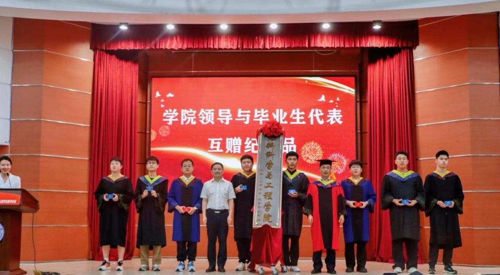 本科毕业生代表金福帅和研究生毕业生代表郝帅发言。他们向同学们表达了真挚的祝福,表达了对学校、学院的不舍和感激之情,同时希望同学们能带着理想、带着祝福跃入人海,勇敢踏浪。