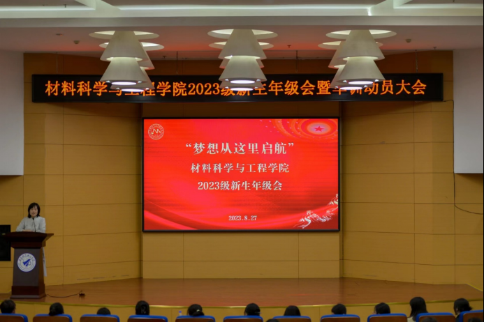 8月27日,材料科学与工程学院在图书馆国际报告厅召开2023级新生年级会暨军训动员大会。辅导员闫红敏对全体新生的到来表示热烈的欢迎,希望同学们在新的人生起点上有理想,有目标,有行动,有成绩,实现人生新飞跃。就学校规章制度,反诈防骗等日常工作进行了讲解。